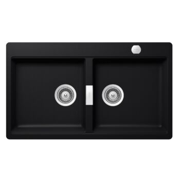 SCHOCK Horizont N-200 Cristadur Puro kétmedencés gránit mosogató, automata szűrőkosár, szifonnal, fekete, beépíthető