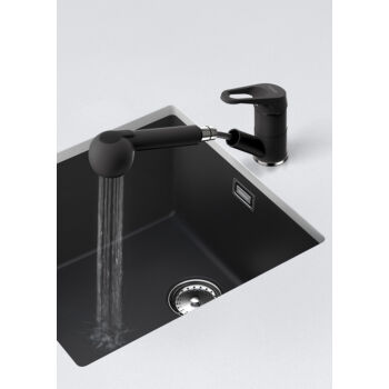 SCHOCK Cosmo konyhai csaptelep Cristalite Nero kihúzható fejjel, zuhany funkcióval, gránit hatás, fekete, beépíthető