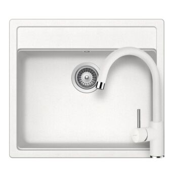 SCHOCK Nemo N-100 Cristalite Alpina egymedencés gránit mosogató szett, Schock Plutos csaptelep, fehér, beépíthető
