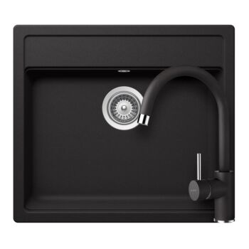SCHOCK Nemo N-100 Cristalite Nero egymedencés gránit mosogató szett, Schock Plutos csaptelep, fekete, beépíthető