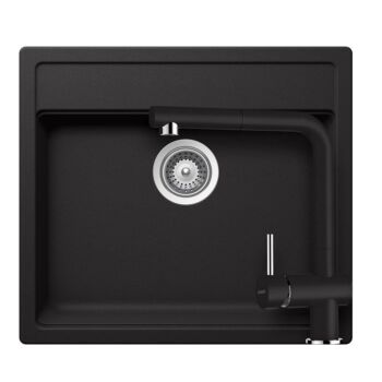 SCHOCK Nemo N-100 Cristalite Nero egymedencés gránit mosogató szett, Schock Epos Ext csaptelep, fekete, beépíthető