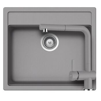 SCHOCK Nemo N-100 Cristalite Croma egymedencés gránit mosogató szett, Schock Epos Ext csaptelep, szürke, beépíthető