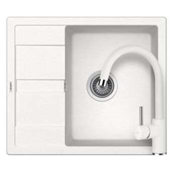 SCHOCK Ronda D-100 Cristalite Alpina gránit mosogatótálca szett, Schock Plutos konyhai csaptelep, fehér, beépíthető