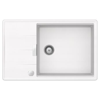 SCHOCK Tia D-100LS Cristadur Polaris gránit mosogatótálca, automata szűrőkosras leeresztővel, szifonnal, fehér, beépíthető