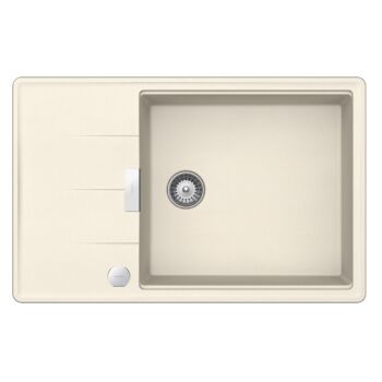 SCHOCK Tia D-100LS Cristadur Magnolia gránit mosogatótálca, automata szűrőkosras leeresztővel, szifonnal, krémfehér, beépíthető