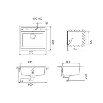 Schock Mono N-100 Cristadur Magma egymedencés gránit mosogató automata dugóemelő, szifonnal, fekete-szemcsés, beépíthető