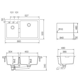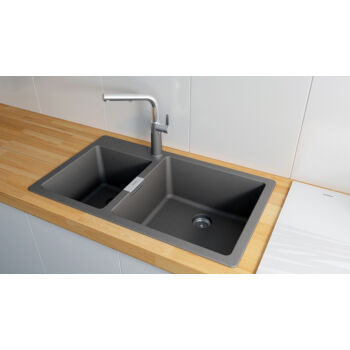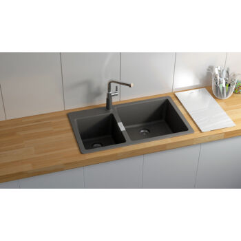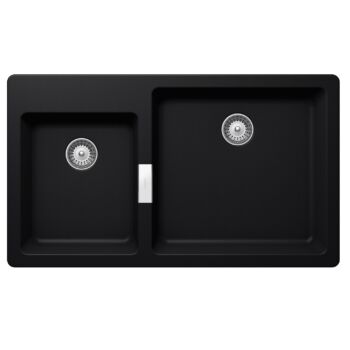 SCHOCK Signus N-175 Cristadur Puro kétmedencés gránit mosogató, szűrőkosár, szifonnal, fekete, beépíthető