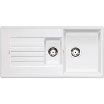 BLANCO ZIA 6S Silgranit másfél medencés csepegtetőtálcás gránit mosogató, szifonnal, fehér, beépíthető