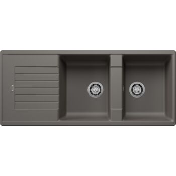 BLANCO ZIA 8S Silgranit kétmedencés csepegtetőtálcás gránit mosogató, szifonnal, vulkánszürke, beépíthető