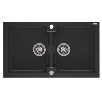 HONEST 160 kétmedencés gránit mosogató automata dugóemelő, szifonnal, fekete, beépíthető