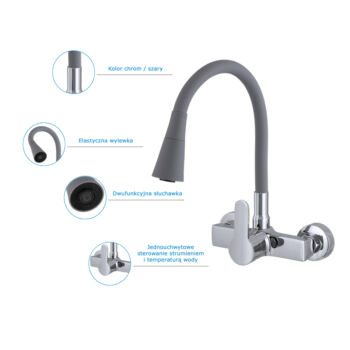 Flex 3000 konyhai FALI csaptelep szürke-króm, beépíthető
