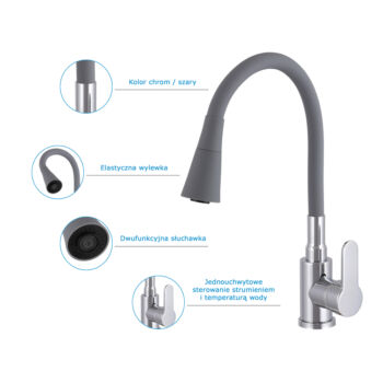 Flex 3000 konyhai csaptelep szürke-króm, beépíthető
