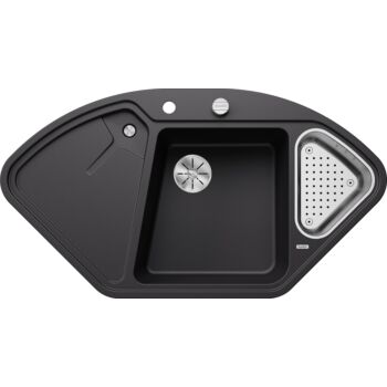 BLANCO DELTA II Silgranit másfél medencés csepegtetőtálcás sarok gránit mosogató, automata dugóemelő, szifonnal, fekete, beépíthető