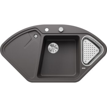 BLANCO DELTA II Silgranit másfél medencés csepegtetőtálcás sarok gránit mosogató, automata dugóemelő, szifonnal, palaszürke, beépíthető