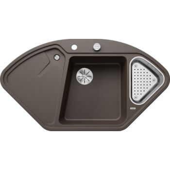 BLANCO DELTA II Silgranit másfél medencés csepegtetőtálcás sarok gránit mosogató, automata dugóemelő, szifonnal, kávébarna, beépíthető