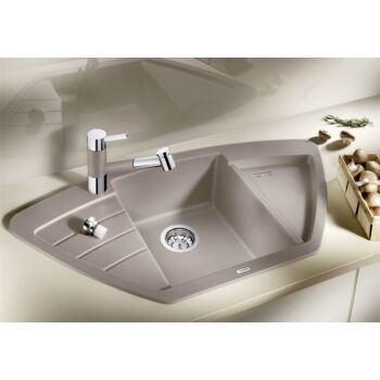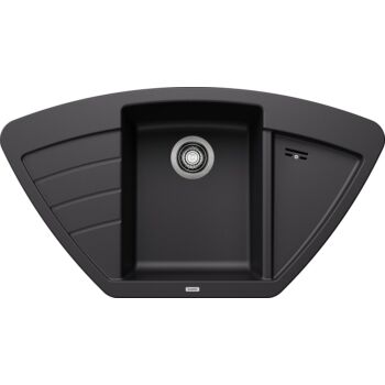 BLANCO ZIA 9 E Silgranit egymedencés csepegtetőtálcás sarok gránit mosogató, szifonnal, fekete, beépíthető