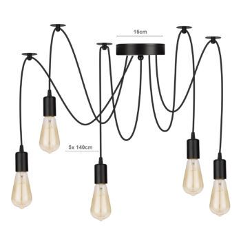 LEDLUX LX-1402 függesztett mennyezeti lámpa,5xE27, fekete
