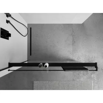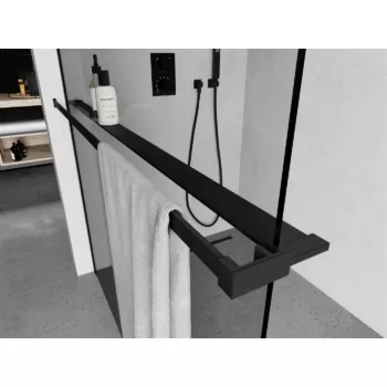 Mexen polc zuhanyfalhoz, törölközőtartóval, fekete, beépíthető