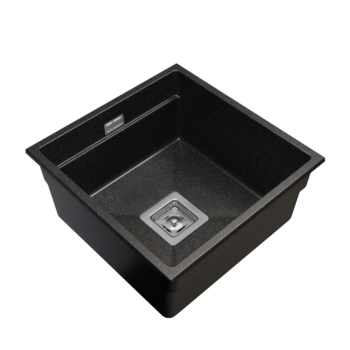 Gamma Decor 4445 gránit mosogató, szifonnal, fekete-szemcsés, beépíthető