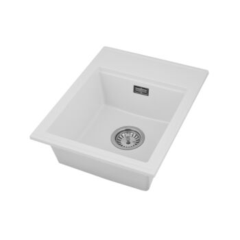 Modern 4050 gránit mosogató automata dugóemelő, szifonnal, fehér, beépíthető