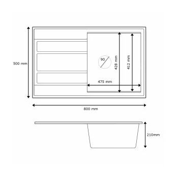 Modern 8010 csepegtetőtálcás egymedencés gránit mosogató, manuális szifonnal, szürke, beépíthető