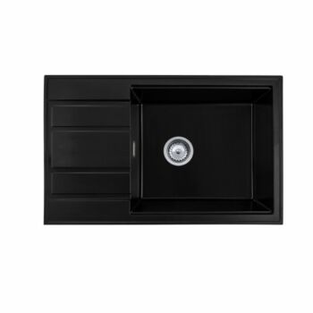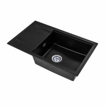 Modern 8010 csepegtetőtálcás egymedencés gránit mosogató, manuális szifonnal, fekete, beépíthető