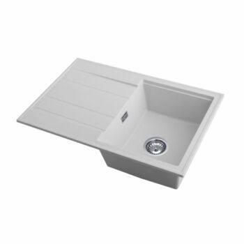 Modern 8050 csepegtetőtálcás egymedencés gránit mosogató, manuális szifonnal, fehér, beépíthető