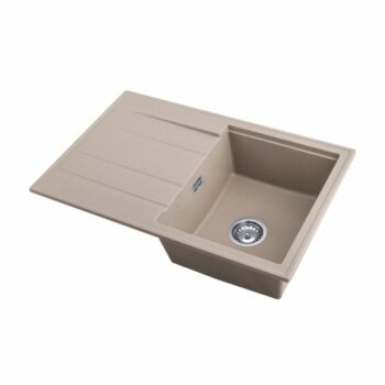 Modern 8050 csepegtetőtálcás egymedencés gránit mosogató, manuális szifonnal, bézs, beépíthető