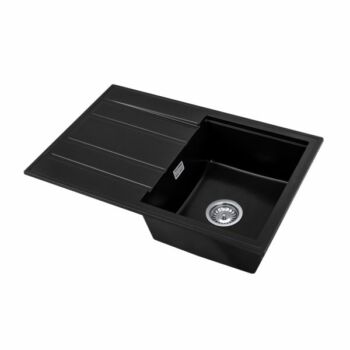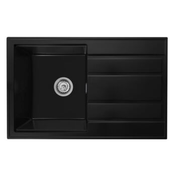 Modern 8050 csepegtetőtálcás egymedencés gránit mosogató, manuális szifonnal, fekete, beépíthető