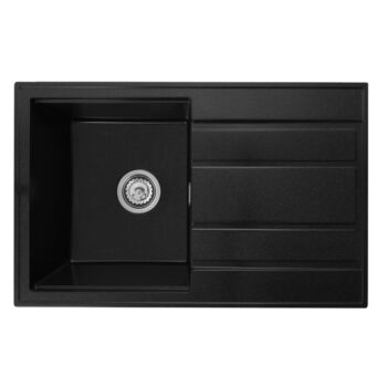 Modern 8050 csepegtetőtálcás egymedencés gránit mosogató, manuális szifonnal, fekete-szemcsés, beépíthető