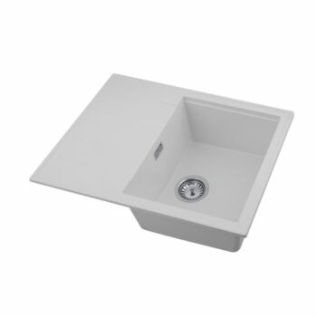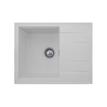 Modern 6550 csepegtetőtálcás egymedencés gránit mosogató, manuális szifonnal, fehér, beépíthető