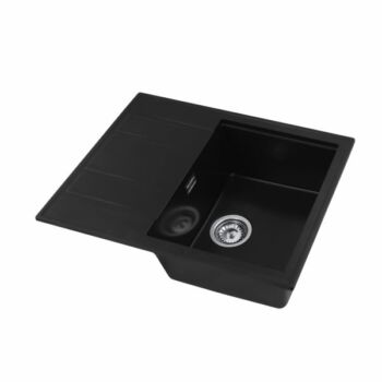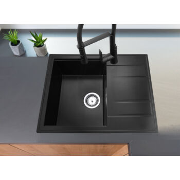 Modern 6550 csepegtetőtálcás egymedencés gránit mosogató, manuális szifonnal, fekete, beépíthető