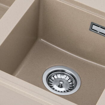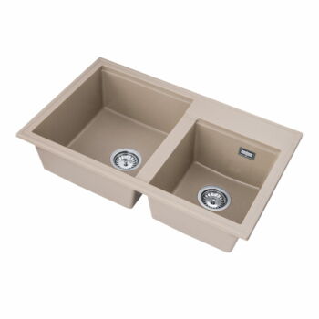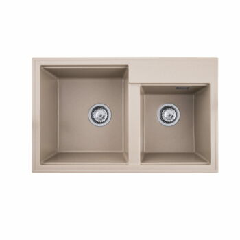 Modern 8020 kétmedencés gránit mosogató, manuális szifonnal, bézs, beépíthető