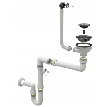Lavre szifoncsomag, 1 medencés mosogatóhoz, manuális, fekete
