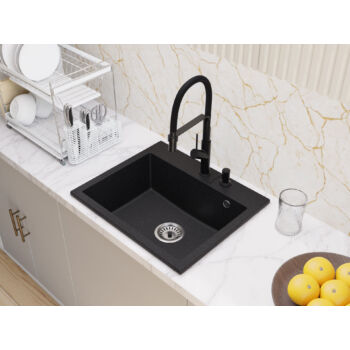 Exclusive 55 gránit mosogató automata dugóemelő, szifonnal, szürke, beépíthető