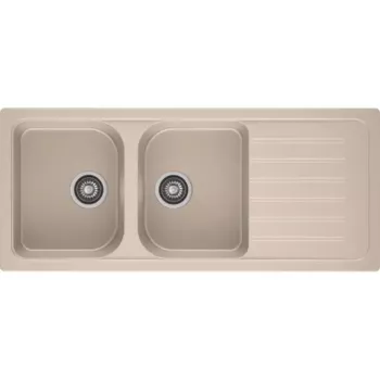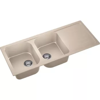 A-POINT 200 kétmedencés csepegtetőtálcás gránit mosogató szifonnal, bézs, megfordítható, beépíthető