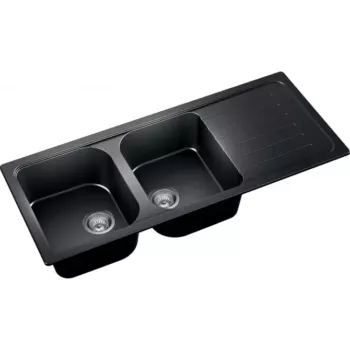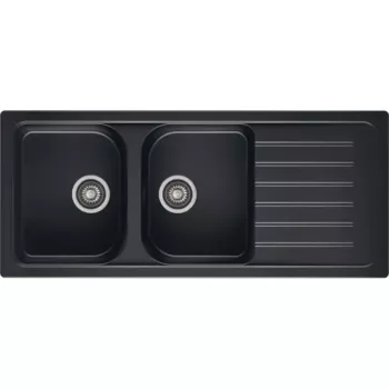 A-POINT 200 kétmedencés csepegtetőtálcás gránit mosogató szifonnal, fekete-szemcsés fényes, megfordítható, beépíthető