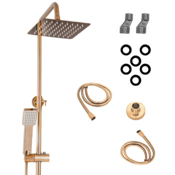 Rossa esőztető zuhanyszett szögletes zuhanyfejjel rose gold, beépíthető