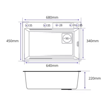 BRADO ARIEL 68 többfunkciós rozsdamentes acél mosogató fekete-antracit színben, beépíthető