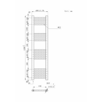 Törölközőszárító radiátor, Basic 40cm x 120cm, fehér