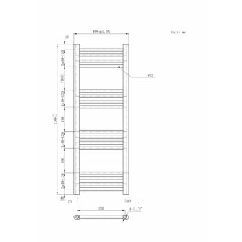 Törölközőszárító radiátor, Basic 40cm x 110cm, fekete