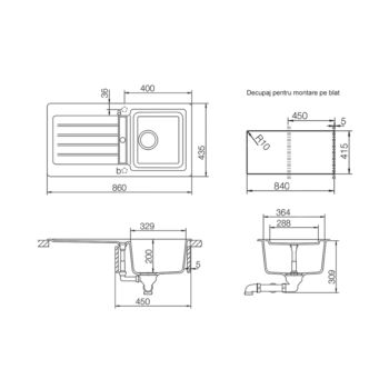 Schock Typos D-100S konyhai mosogatótálca Cristalite Croma 860 x 435 mm, gránit kompozit, megfordítható, hagyományos beépítés, szürke, beépíthető