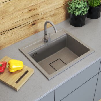 QUADRO 5850 gránit mosogató automata dugóemelő, szifonnal, bézs, beépíthető