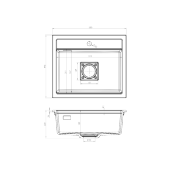 QUADRO 5850 gránit mosogató automata dugóemelő, szifonnal, fekete-aranyszemcsés, beépíthető