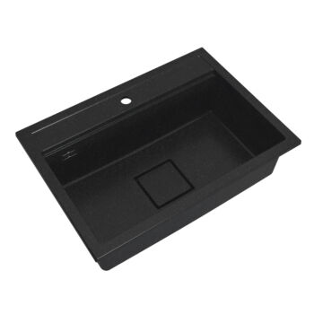 QUADRO 7050 gránit mosogató automata dugóemelő, szifonnal, fekete-szemcsés, beépíthető