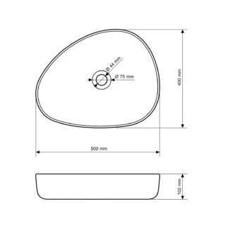 Gamma Bianco mosdókagyló, aszimmetrikus ovális, beépíthető