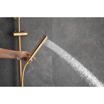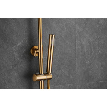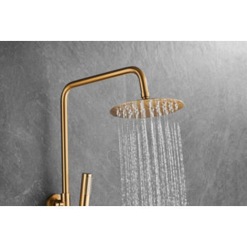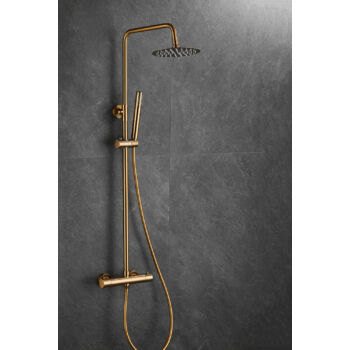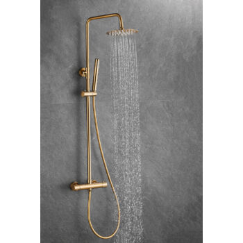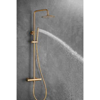 Roy Pro termosztatikus zuhanyszett fali keverőcsappal és esőztető zuhanyfejjel szálcsiszolt arany, beépíthető