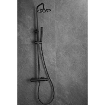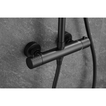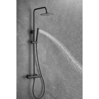 Roy Pro termosztatikus zuhanyszett fali keverőcsappal és esőztető zuhanyfejjel fekete, beépíthető