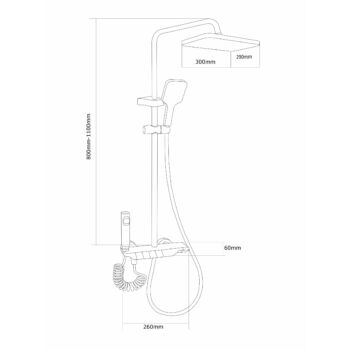 Piano termosztatikus esőztető zuhanyszett szögletes zuhanyfejjel gun grey, beépíthető