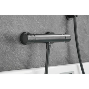 ROY PRO termosztatikus fali zuhany csaptelep, matt fekete, beépíthető
